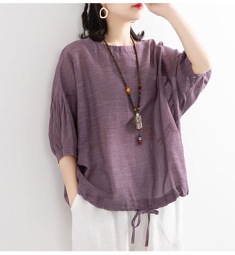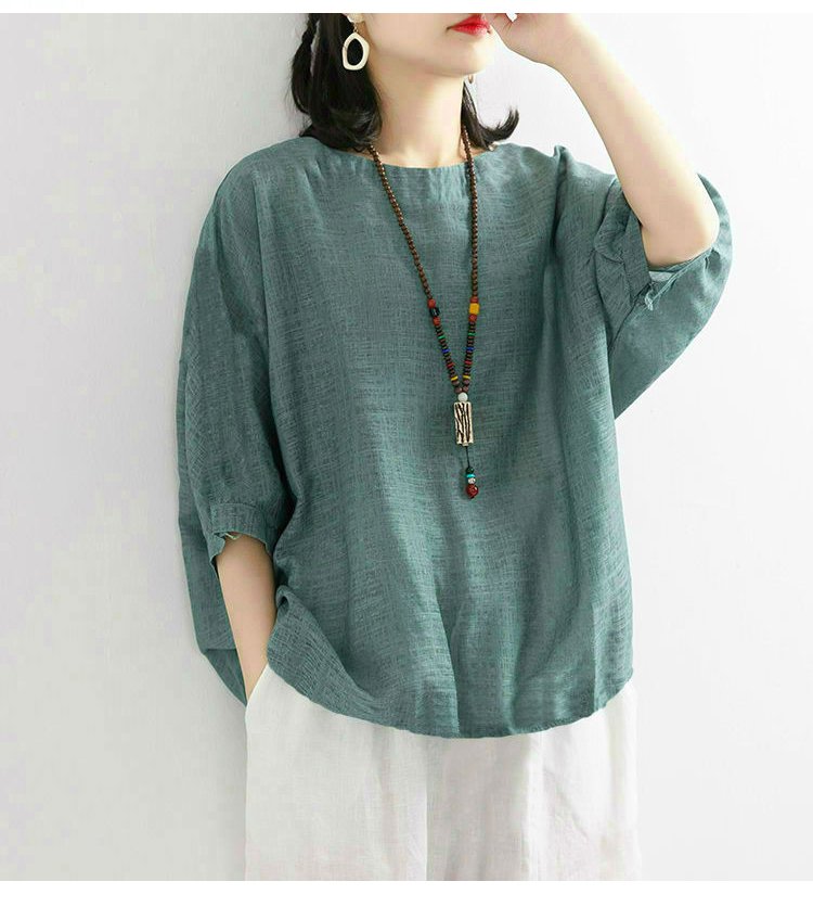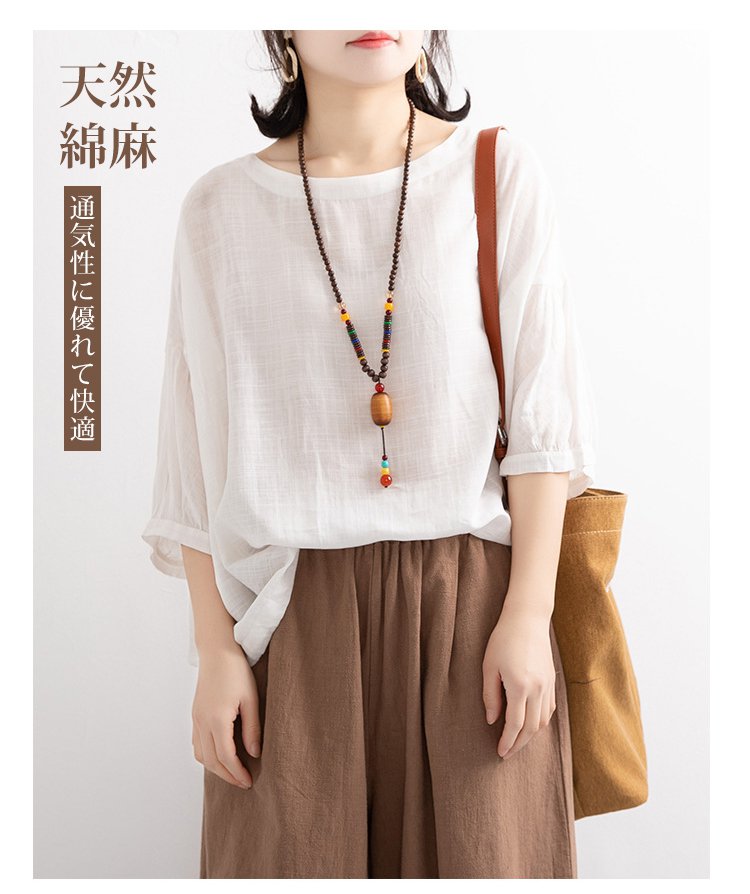 【カジュアル綿麻トップス】通気性抜群、肌に優しい、優れた吸湿性、着瘦せ、体型カバー